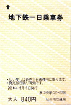 | [仙台市営地下鉄] 地下鉄一日乗車券 |